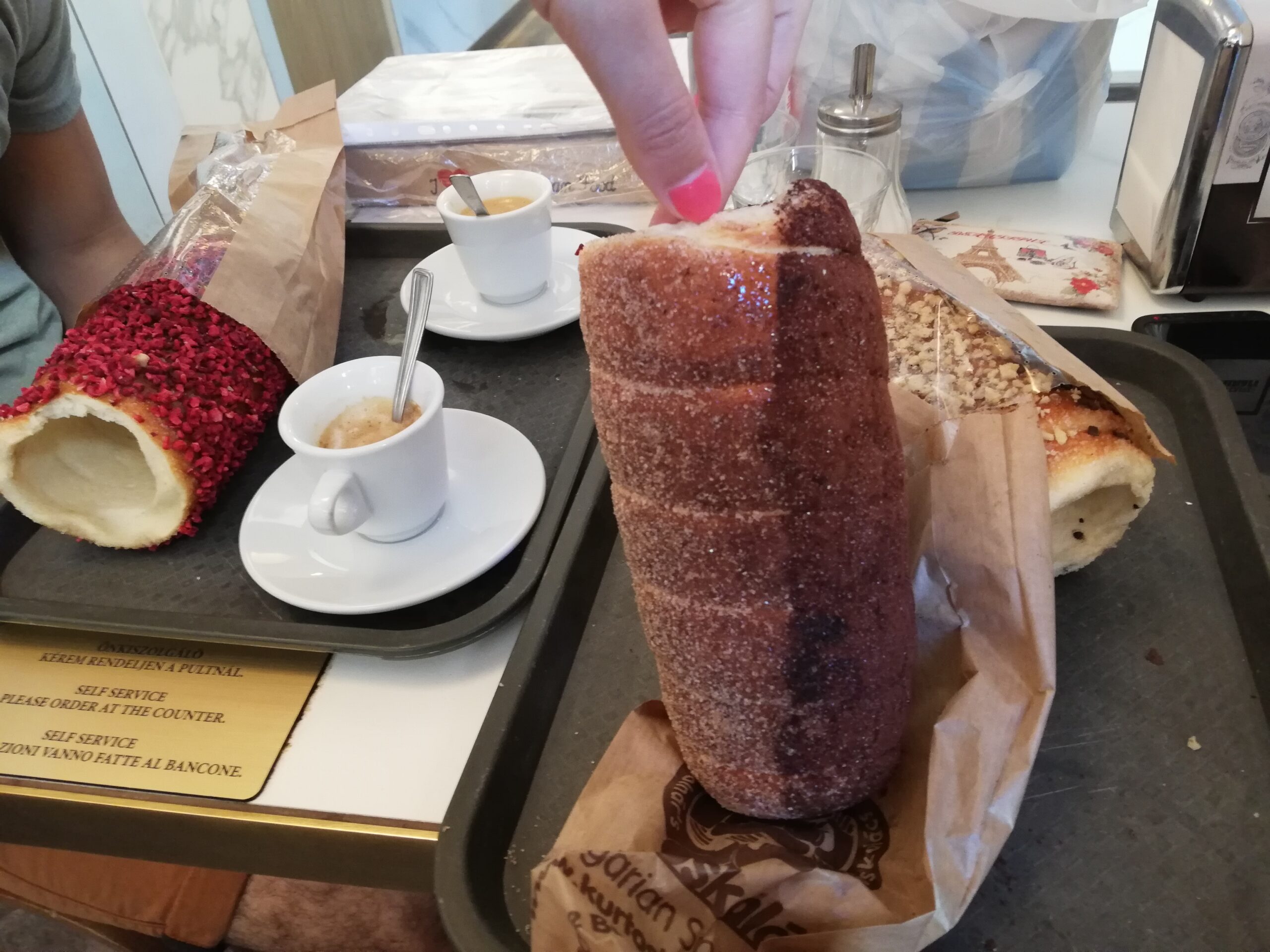 Lo cierto es que, por ejemplo, en Praga te encuentras puesto con estos deliciosos bollitos a la venta a cada paso que das. Sin embargo, en Budapest no tuve esa sensación. Me crucé con varios puestos, pero siempre estaban cerrados. Así recurrí a «san google» y me descubrió una cafetería super completa que hizo que me enamorase aún más de estos pequeños pecados divinos. El sitio se llama Molnár’s kürtőskalács y está muy cerca del mercado central, en la calle Váci u 31.