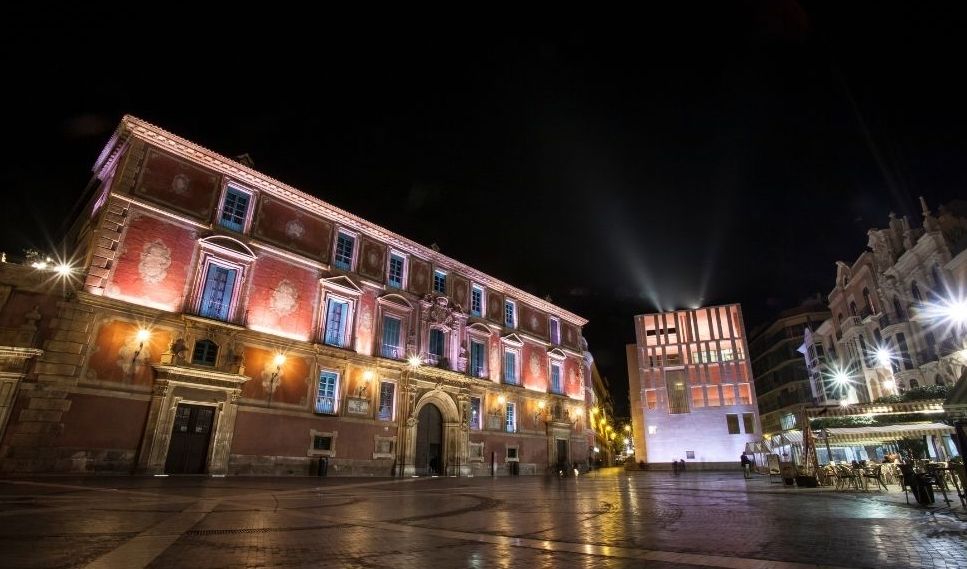 En la plaza del Cardenal Belluga se encuentran también el Palacio Episcopal y un edificio que forma parte del Ayuntamiento construido por Rafael Moneo.